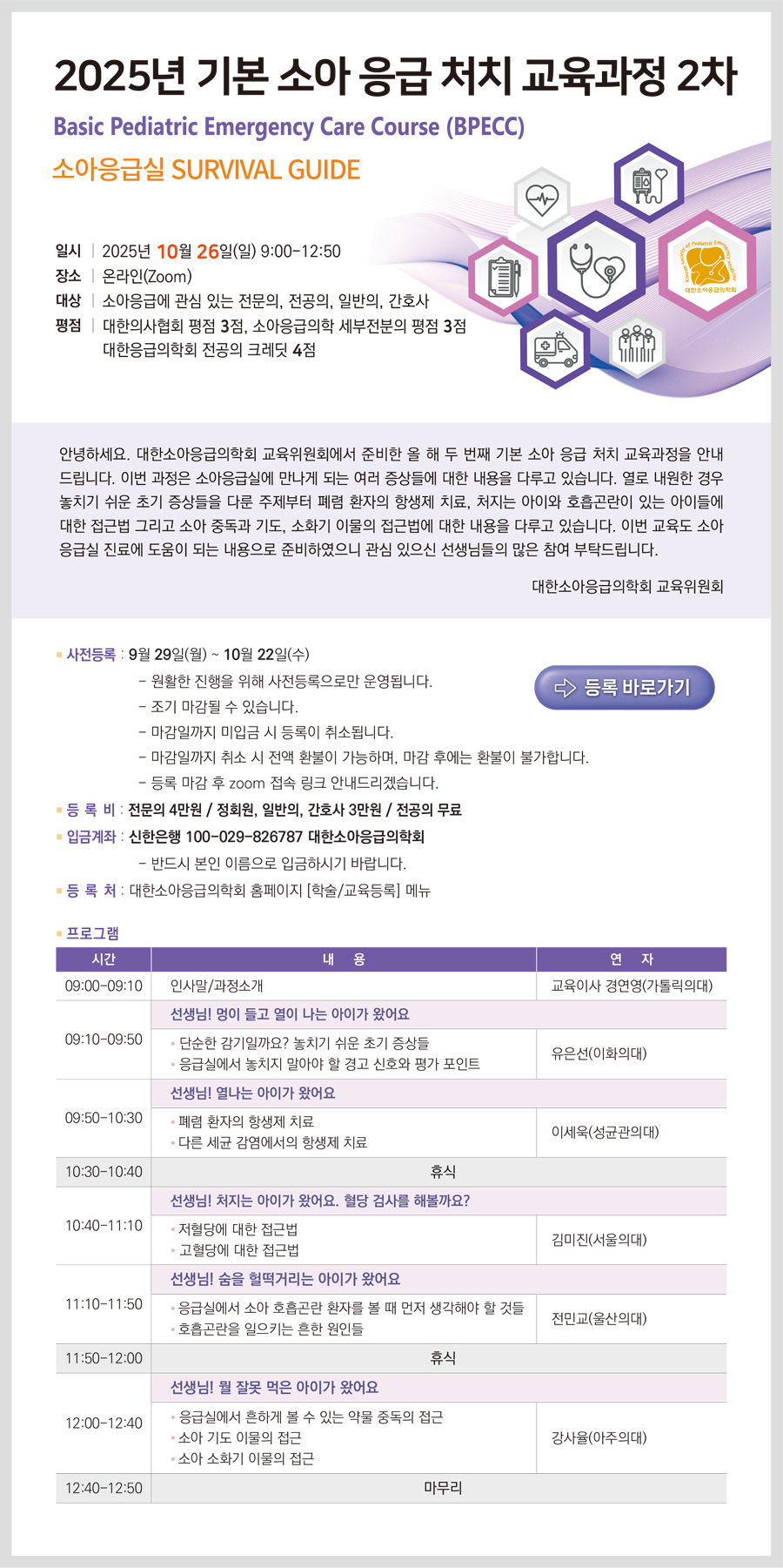 2025년 기본 소아 응급 처치 교육과정 2차(BPECC) 접수마감
